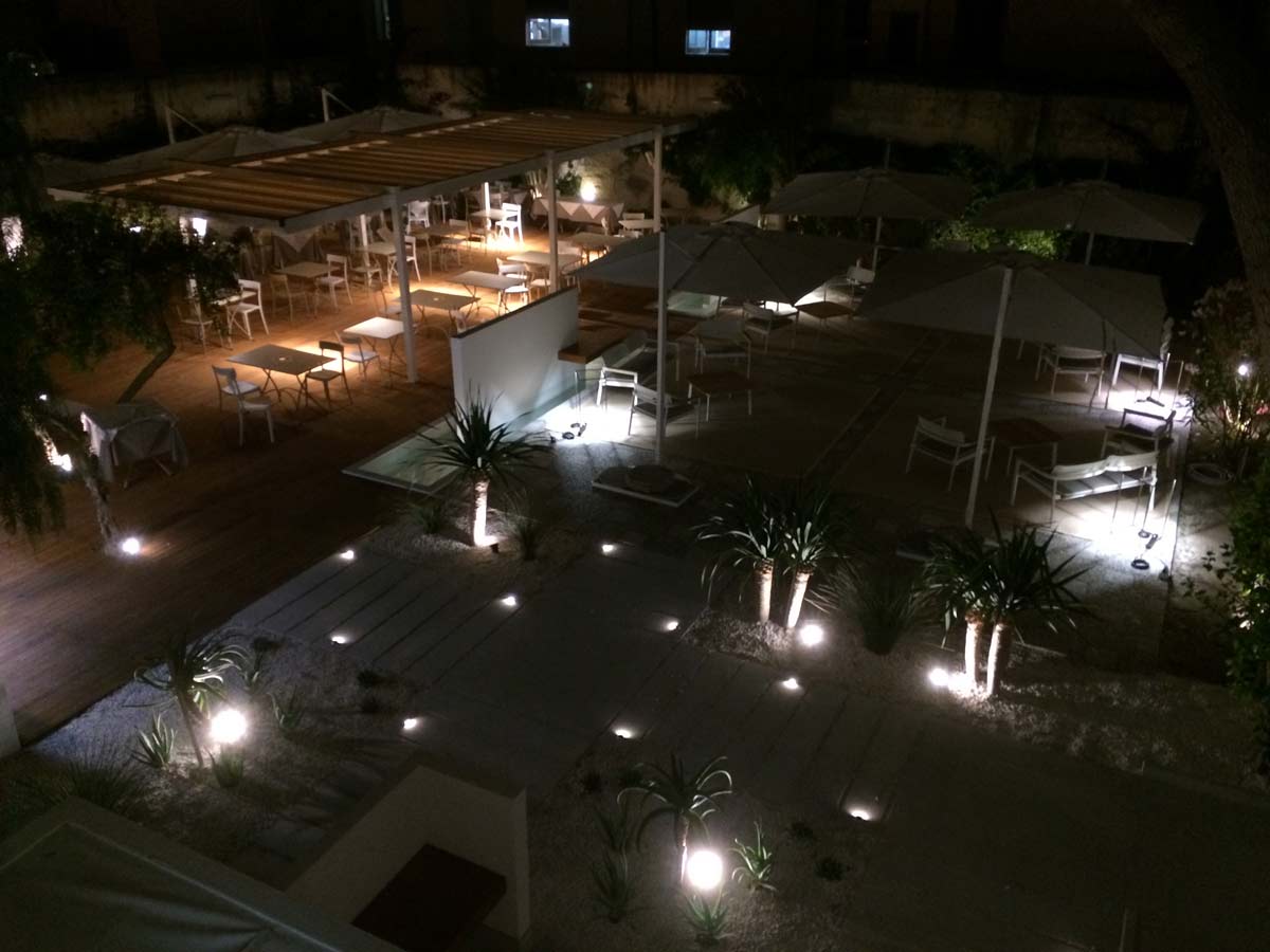 Attiguo all’hotel Aegusa, il ristorante il Giardino dell’Aegusa, si rivela quasi inaspettatamente ai visitatori: è un giardino intimo, profumato delle fragranze tipiche del mediterraneo, nel cuore di Favignana che apre le proprie porte a chi volesse trascorrere una serata immerso nel verde gustando le prelibatezze di una cucina mediterranea e marcatamente isolana; l’area lounge bar all’ombra dei melograni garantisce ai nostri ospiti l’atmosfera ideale per un aperitivo rinfrescato dal tripudio di piante e dal suono di buona musica.